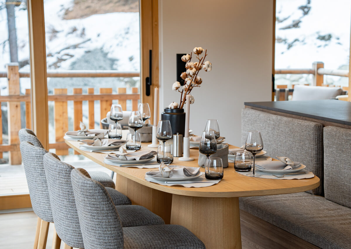 Dieses freistehende Chalet auf drei Ebenen verfügt über drei Schlafzimmer mit Doppelbett (180 × 200 cm) sowie drei angrenzende Badezimmer mit Dusche. Der Wohnbereich bietet eine gemütliche Sitzecke mit Fernseher, eine voll ausgestattete Küche, einen Holzofen und schöne Außenbereiche mit Blick ins Tal sowie eine nach Süden ausgerichtete Terrasse mit freiem Blick auf Sorebois. Das Chalet ist nach Süden, Osten und Norden ausgerichtet. Zur Ausstattung gehören Haushaltsgeräte wie Waschmaschine, Geschirrspüler, Nespresso-Kaffeemaschine, alle notwendigen Küchenutensilien usw.
