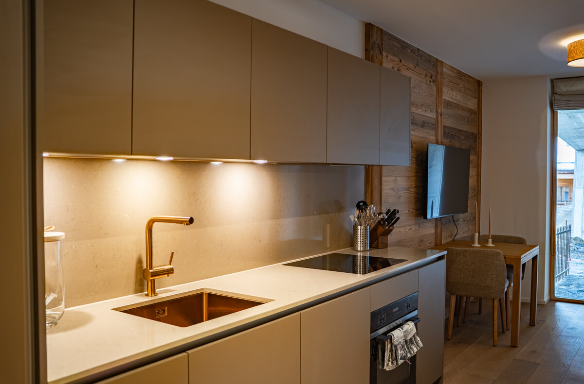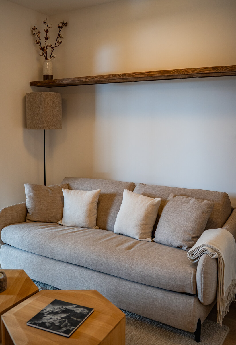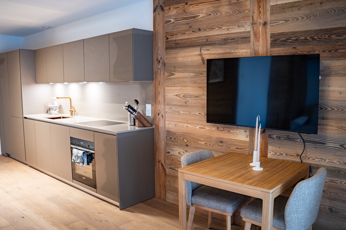 This apartment includes a sofa bed in the living room as well as a bathroom. The living area features a lounge corner with a TV and a fully equipped open kitchen. This apartment also includes household appliances such as a dishwasher, a Nespresso machine, cooking utensils, etc.
