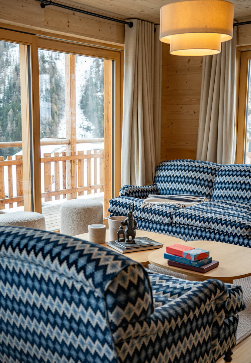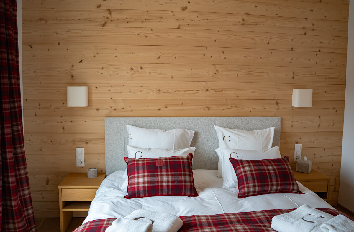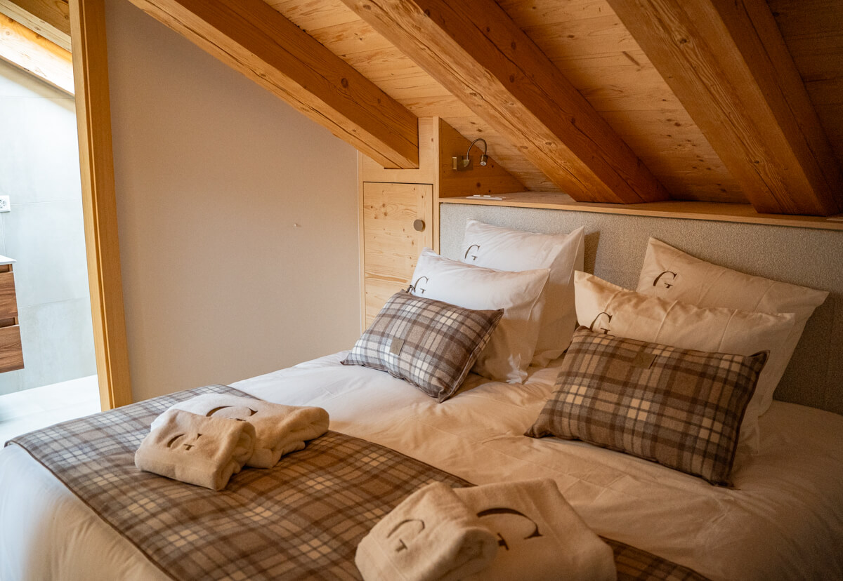 The private chalet M, on the left southern part of the top row of chalets in the Guernerés resort, is built on three levels over a surface area of 254 m², and can sleep up to 10 guests, with a maximum of 8 adults.