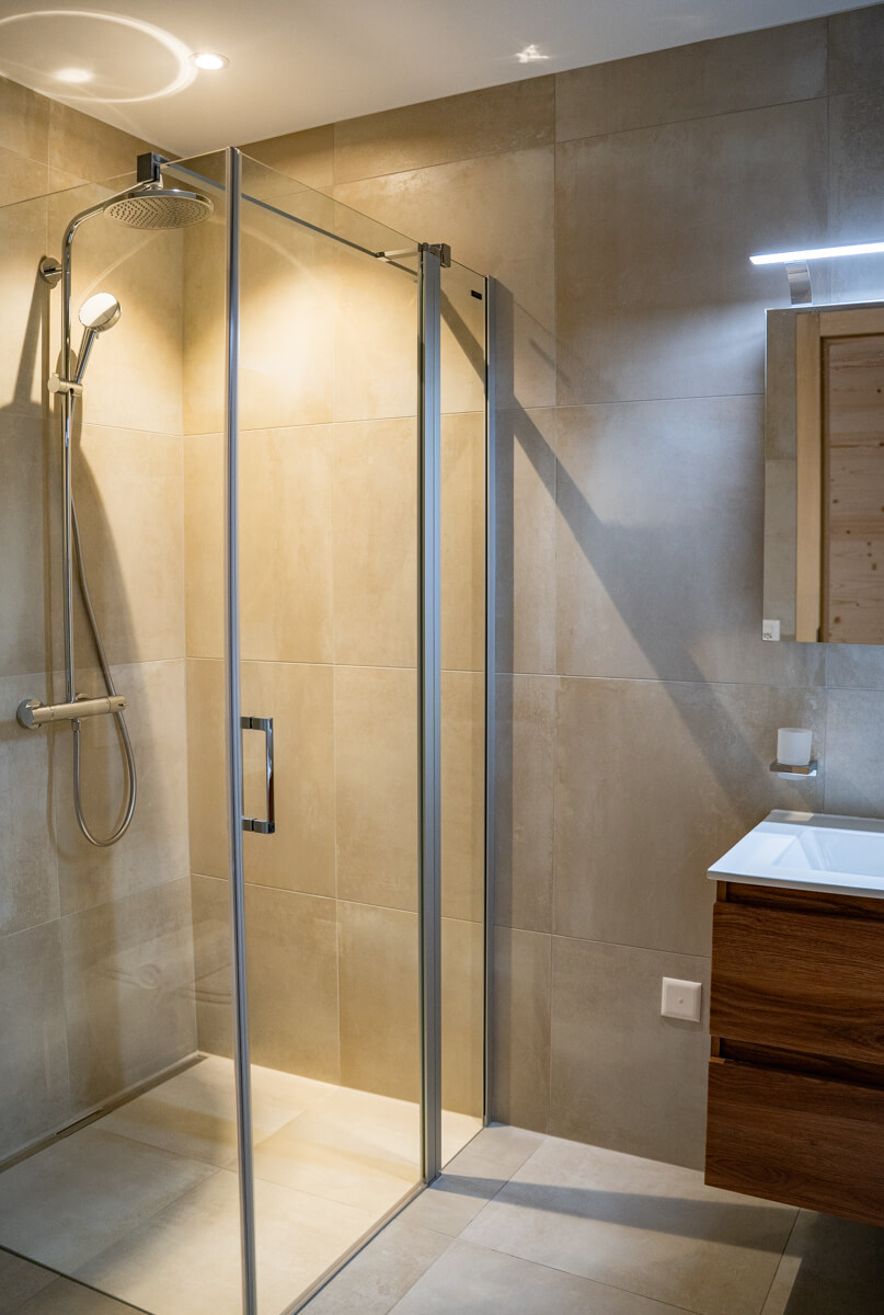 This private chalet built on three stories has four bedrooms with a double bed (180x200), a room with two single beds (80x200), as well as five en-suite bathrooms with a shower and two bathtubs. The living room features a lounge area with a TV, a fully equipped kitchen and outdoor spaces affording an unobstructed view of the surrounding summits. As an added bonus: a cinema room. This chalet boasts triple exposure: South, East and North. It features a range of household equipment, including a washing machine and a dryer, a dishwasher, a Nespresso coffee machine, cooking utensils, etc.