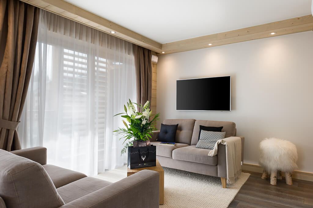 This duplex apartment includes three bedrooms with a double bed (180*200), and two bathrooms. The living area features a lounge corner with a TV and a fully equipped open kitchen. Furnished balconies complete the space. This apartment is equipped with appliances such as a washing machine, a dishwasher, a Nespresso coffee machine, cooking essentials, etc.