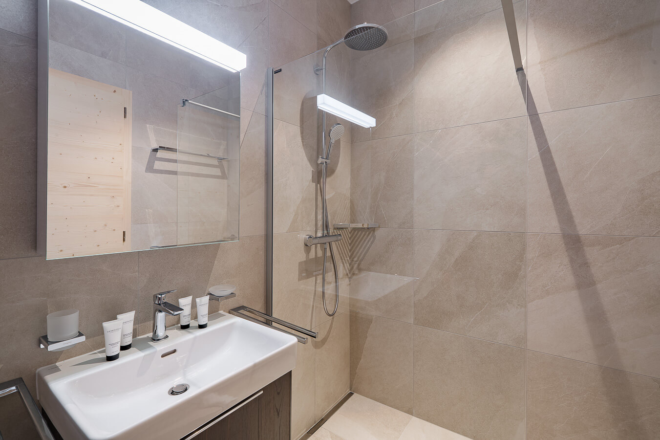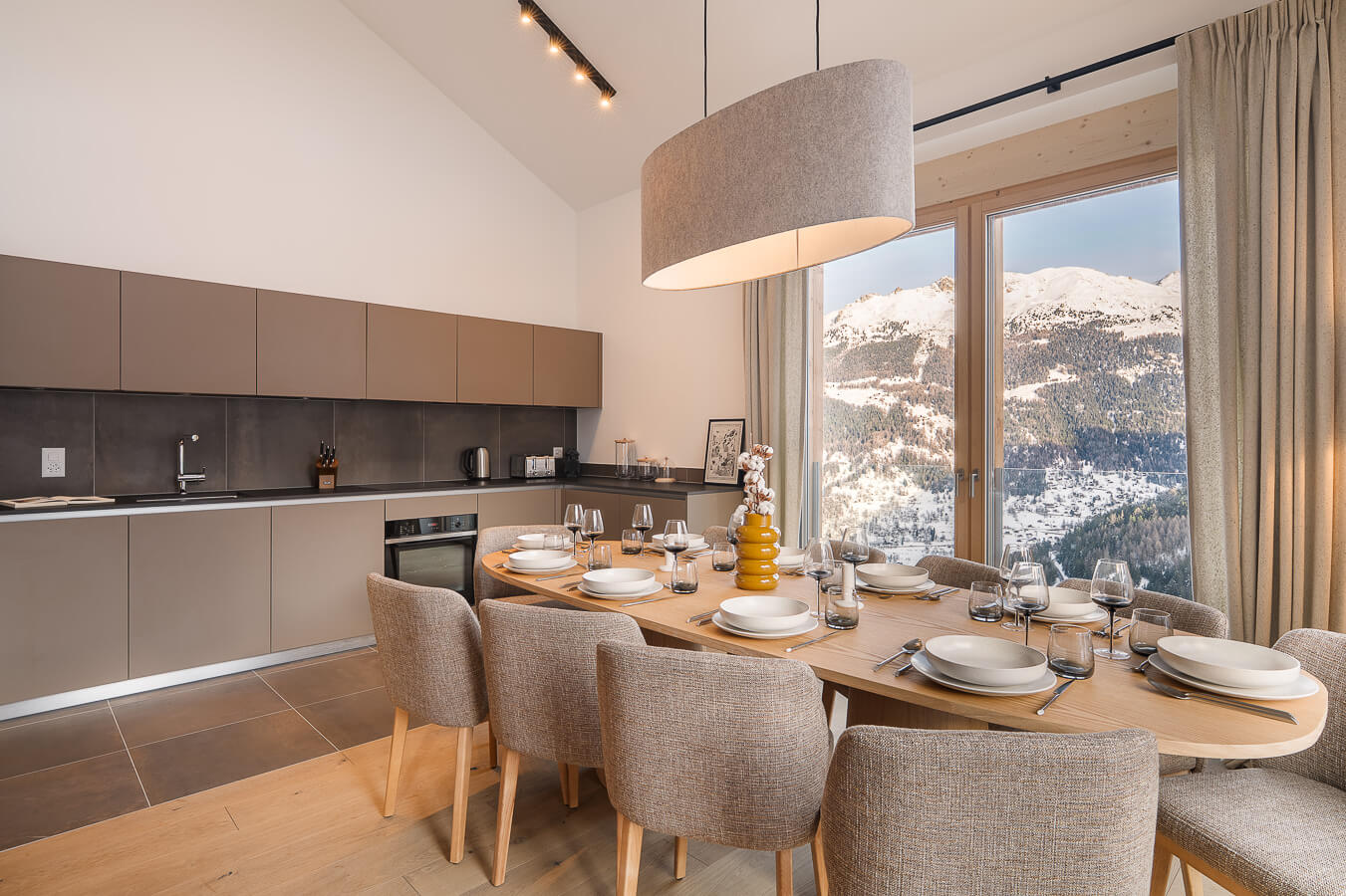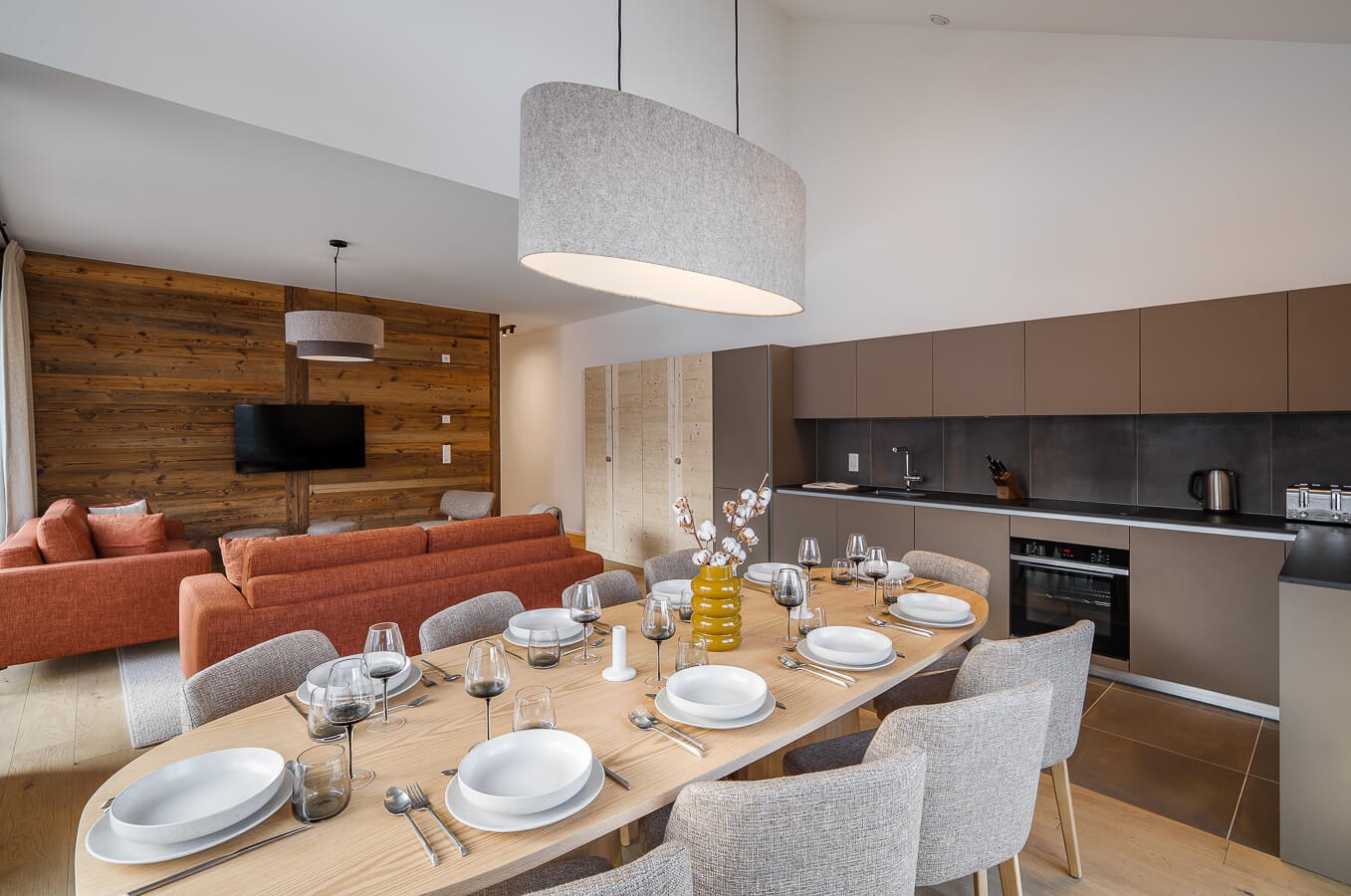 This apartment includes four bedrooms with a double bed (180*210, 160*200), a corridor converted into a cabin with a bunkbed, as well as three bathrooms. The living room features a lounge area with a TV, and a fully equipped open kitchen. Three balconies complete the space. This apartment also includes a collection of household appliances, such as a dishwasher, a Nespresso machine, cooking utensils, etc.
