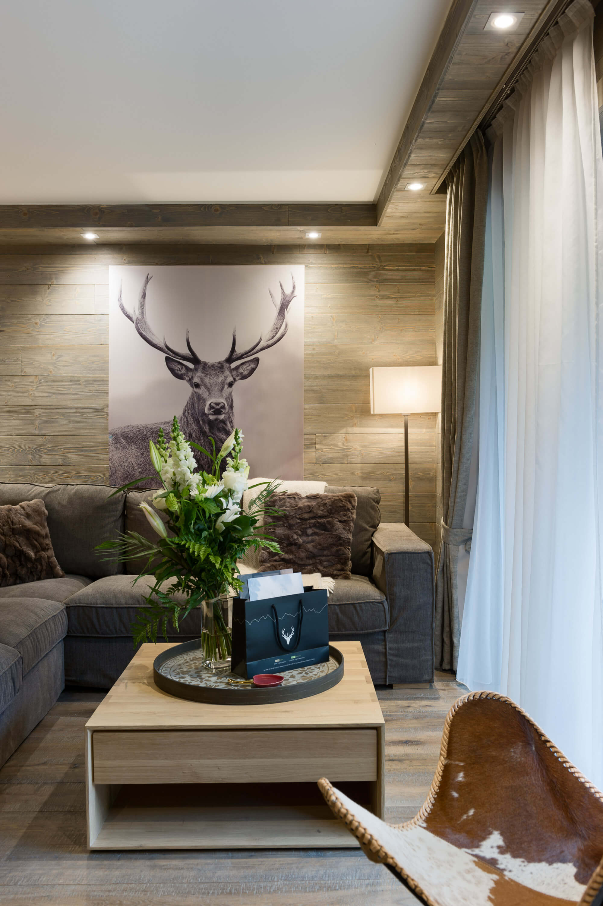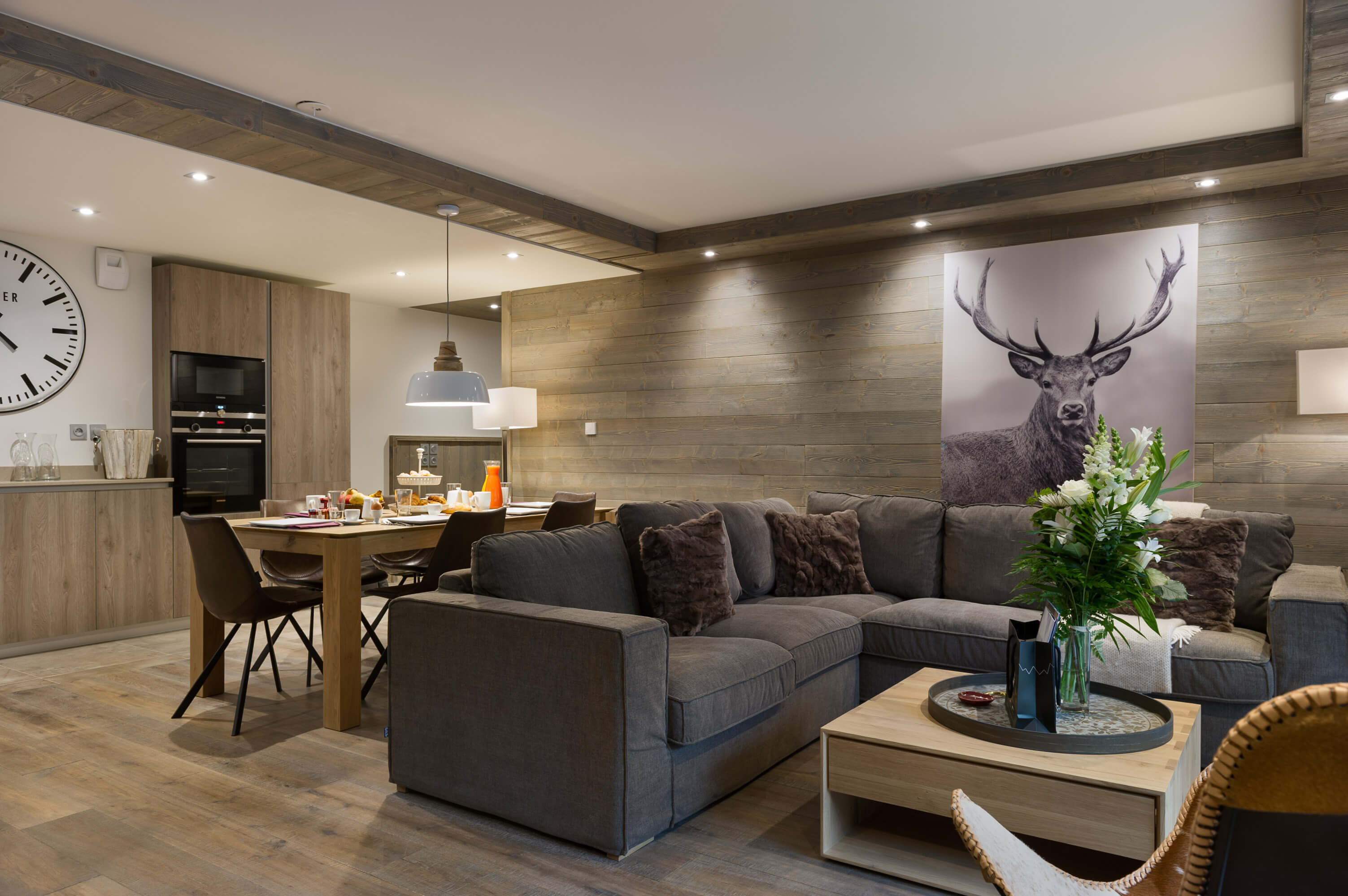 This apartment includes three bedrooms with a double bed (180*200, 160*200), each with an en-suite bathroom. The living room features a lounge area with a TV, and a fully equipped open kitchen. Two balconies complete the space. This apartment also includes a collection of household appliances, such as a washing machine, a dishwasher, a Nespresso machine, cooking utensils, etc.