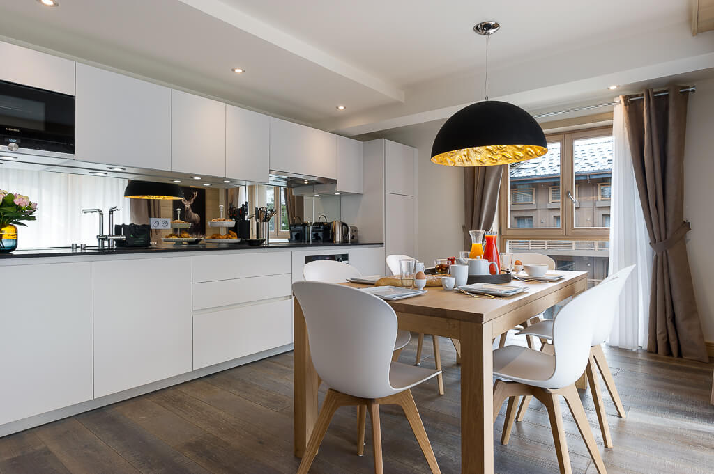 This apartment includes two bedrooms with a double bed (180*200, 160*200), a windowless room with a double bed (160*200), as well as two bathrooms, one of which has a bathtub. The living room features a lounge area with a TV, and a fully equipped open kitchen. A large furnished terrace completes the space. This apartment also includes a collection of household appliances, such as a washing machine, a dishwasher, a Nespresso machine, cooking utensils, etc.