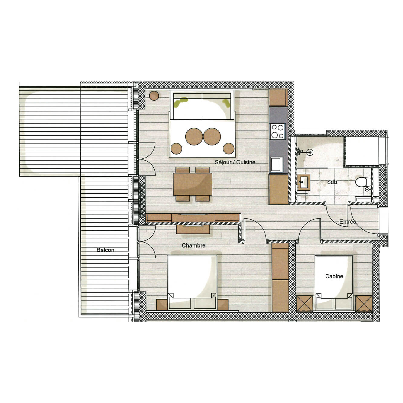 The apartment n°64, on the 6th floor of the Guernerés residence, features a surface area of 76 m² and can sleep up to 4 guests.