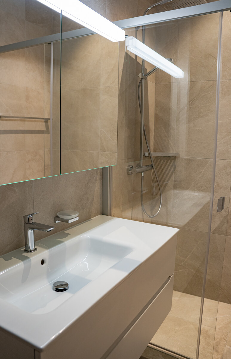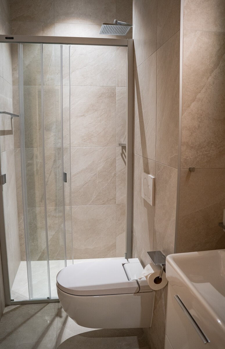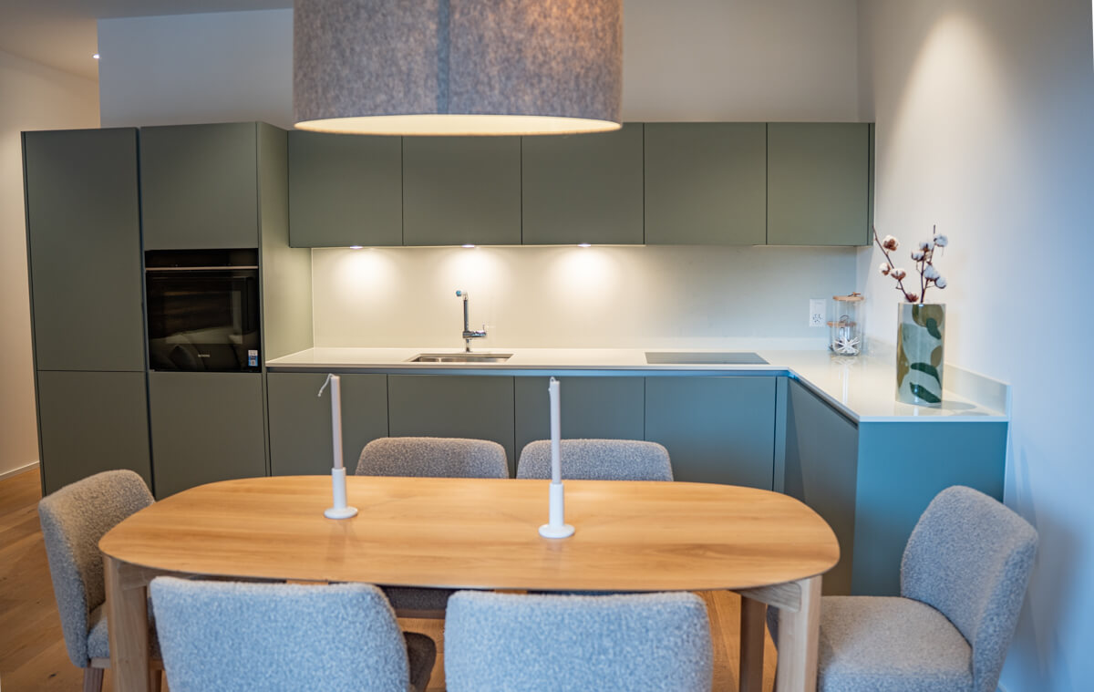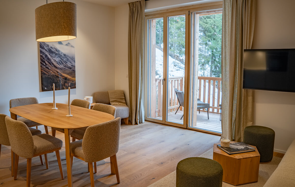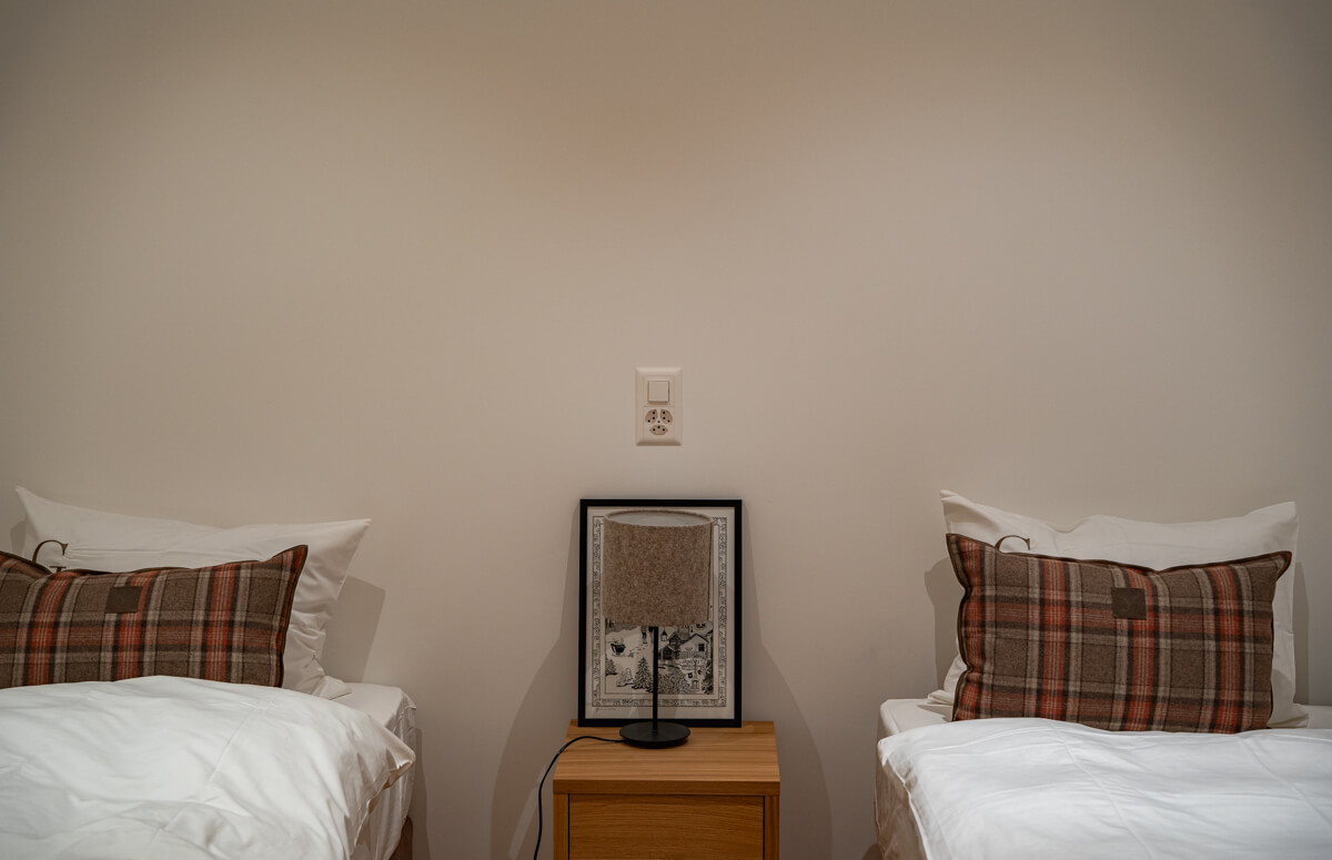 This apartment includes one bedroom with a double bed (180*200), one windowless room with two single beds (90*200), as well as two bathrooms. The living area features a lounge corner with a TV and a fully equipped open kitchen. Furnished balconies complete the space. This apartment also includes household appliances such as a washing machine and dryer, a dishwasher, a Nespresso machine, cooking utensils, etc.