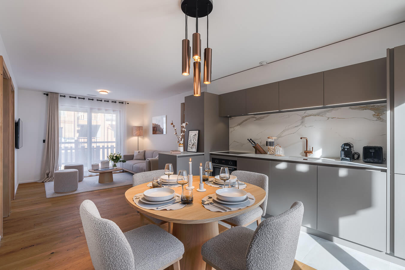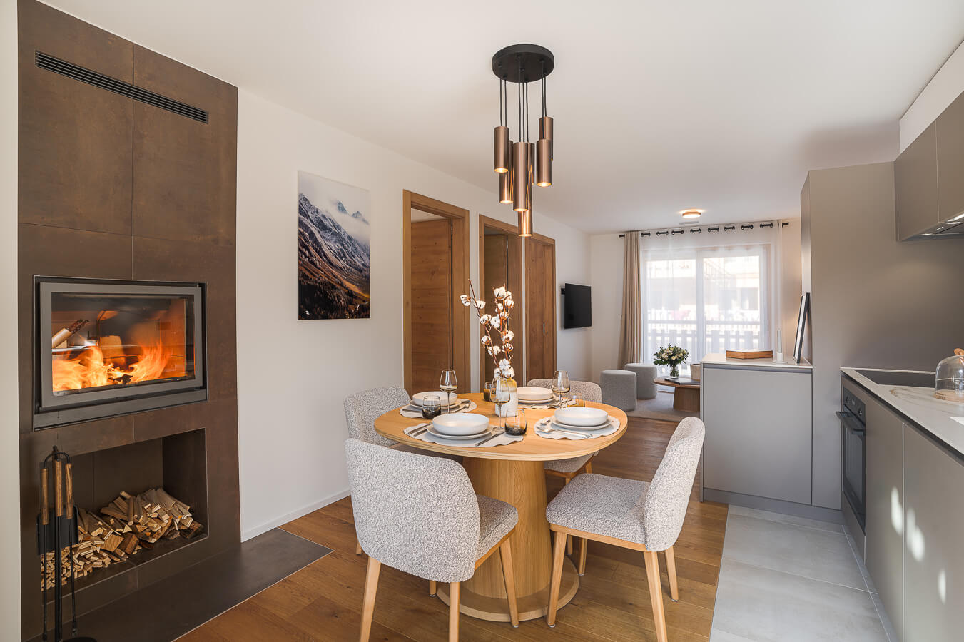 This apartment boasts a wonderful fireplace! It is the moment to gather around the fire, to listen to the crackling flames, or simply to warm up the atmosphere. We simply adore this apartment and its perfect mountain atmosphere!