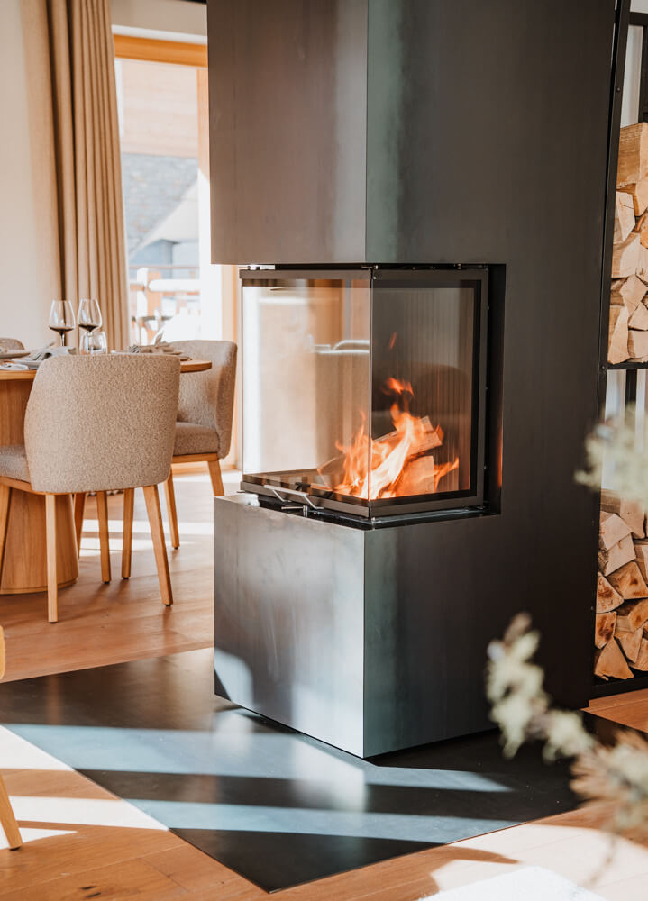 This private chalet built on three stories has three bedrooms with a double bed (180x200), a cabin-styled room with a bunkbed (90x190), as well as three bathrooms with a bathtub and shower. The living room features a lounge area with a TV, a fully equipped kitchen, a wood stove and beautiful outdoor spaces affording a panoramic view of the neighbouring mountains of Sorebois and Nava. This chalet opens out in every direction, letting in the sun and creating different views throughout the day. It features a range of household equipment, including a washing machine and a dryer, a dishwasher, a Nespresso coffee machine, cooking utensils, etc.