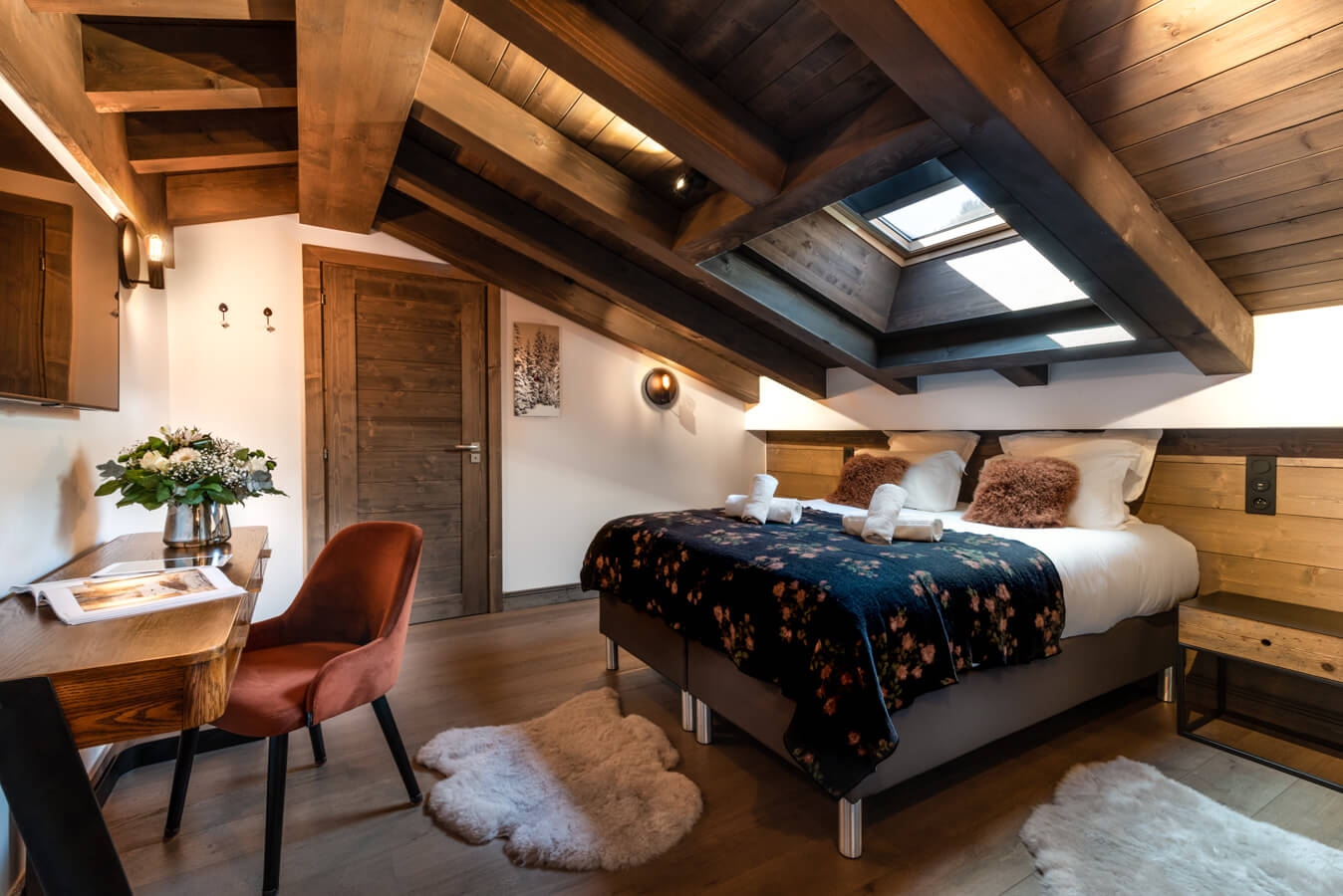 This private chalet built on three stories has four bedrooms with a double bed (180x200), a room with two single beds (80x200), as well as five en-suite bathrooms with a shower and two bathtubs. The living room features a lounge area with a TV, a fully equipped kitchen, a wood stove and outdoor spaces affording an unobstructed view of the surrounding summits. As an added bonus: a cinema room. This chalet boasts triple exposure: South, East and North. It features a range of household equipment, including a washing machine and a dryer, a dishwasher, a Nespresso coffee machine, cooking utensils, etc.