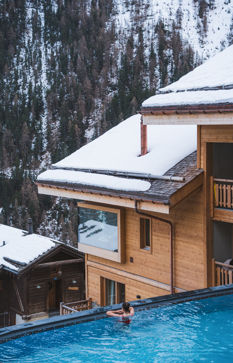 Treat yourself to a moment of pure relaxation in the wellness suite of the Guernerés resort in Grimentz. Let yourself be enveloped by the soothing heat of the heated 20x9 metre indoor-outdoor pool, a true haven of serenity. Extend the experience in the wet zone, with hammam, sauna, sensory showers and relaxation area with sun loungers. Whilst outdoors, recharge your batteries on the solarium, overlooking the peaks. An elegant and intimate setting, ideal for relaxing after a day in the mountains and finding calm, balance and peace in the heart of the Swiss Alps.