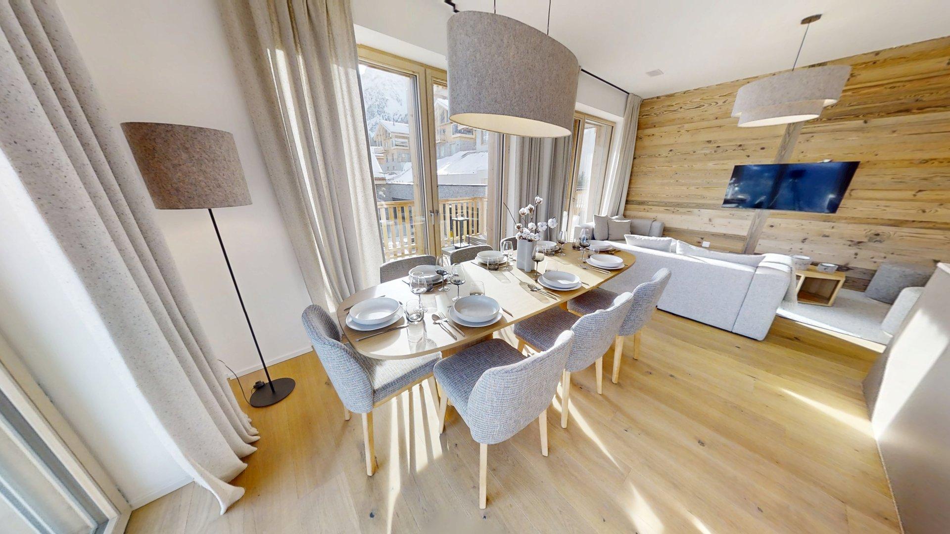 Cet appartement dispose de trois chambres avec un lit double (180*200), d'une chambre cabine avec un lit superposé ainsi que de trois salles de bains. La pièce de vie bénéficie d'un coin salon avec une télévision et d'une cuisine ouverte toute équipée. Deux balcons viennent compléter l'espace. Cet appartement dispose d'appareils électroménagers tels qu'un lave-linge, un lave vaisselle, une machine à café Nespresso, le nécessaire de cuisine, etc.