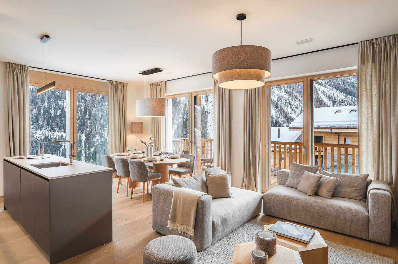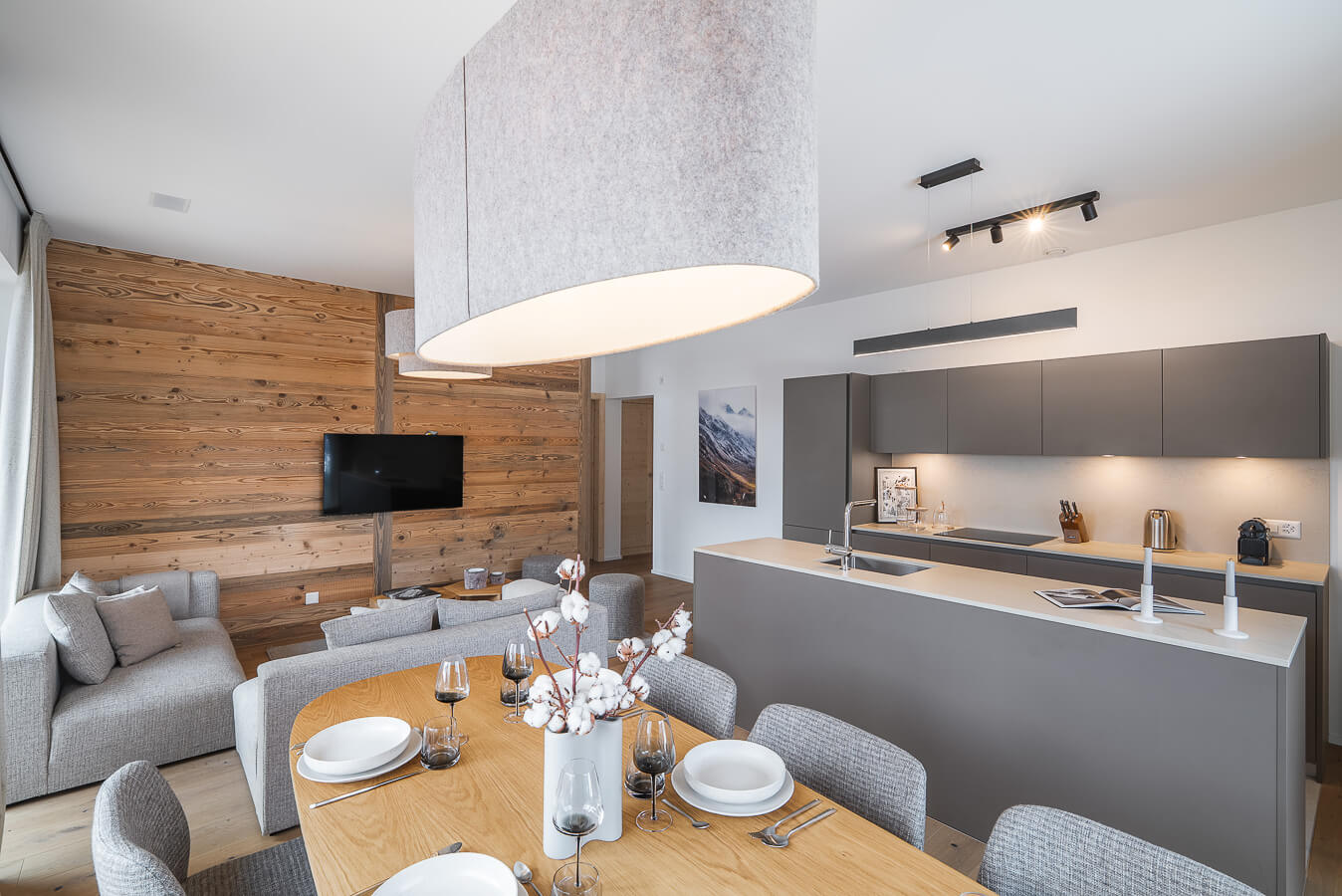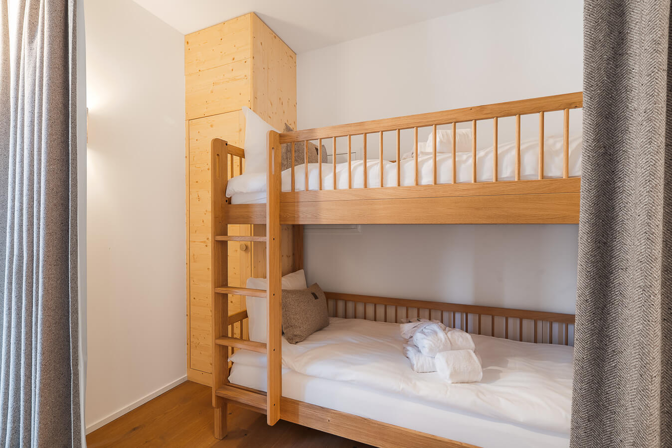 Cet appartement dispose de trois chambres avec un lit double (180*200), d'une chambre cabine avec un lit superposé ainsi que de trois salles de bains. La pièce de vie bénéficie d'un coin salon avec une télévision et d'une cuisine ouverte toute équipée. Deux balcons viennent compléter l'espace. Cet appartement dispose d'appareils électroménagers tels qu'un lave-linge, un lave vaisselle, une machine à café Nespresso, le nécessaire de cuisine, etc.