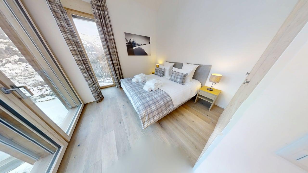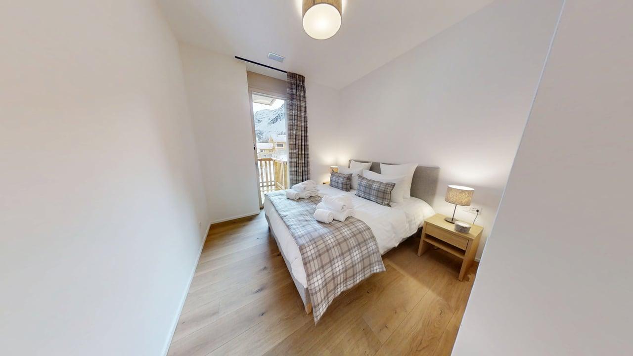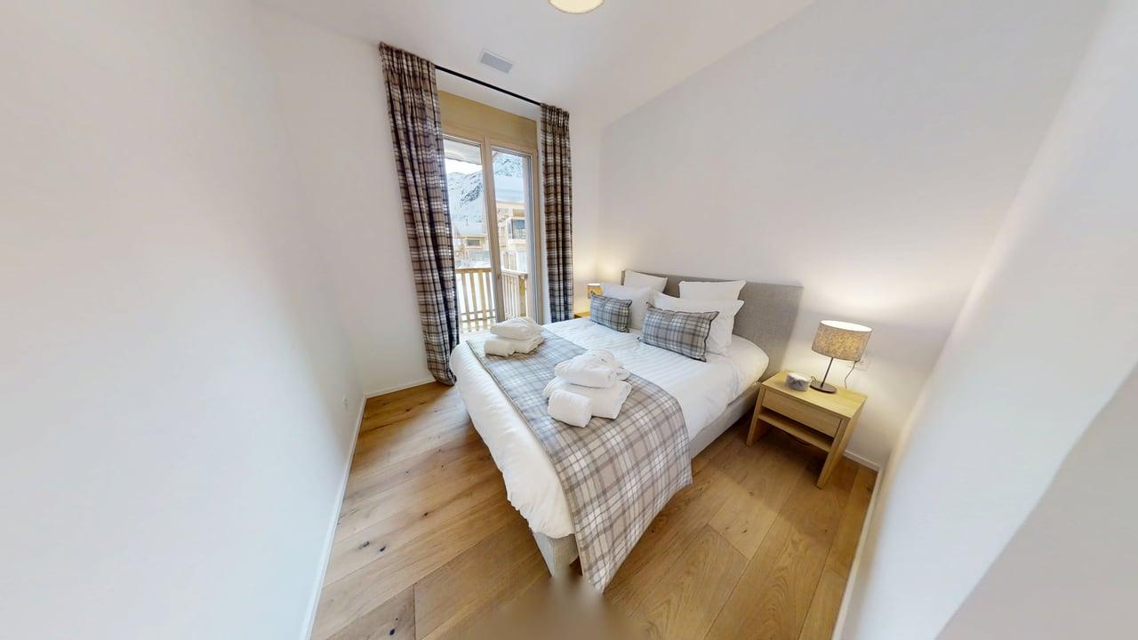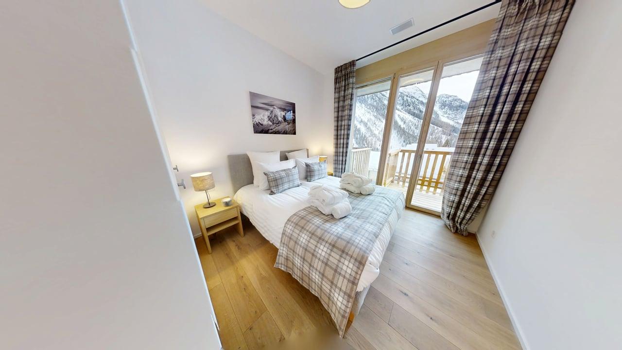 Cet appartement dispose de quatre chambres avec un lit double (180*210, 160*200), d'un passage faisant office de cabine avec un lit superposé ainsi que de trois salles de bains. La pièce de vie bénéficie d'un coin salon avec une télévision et d'une cuisine ouverte toute équipée. Trois balcons viennent compléter l'espace. Cet appartement dispose d'appareils électroménagers tels qu'un lave vaisselle, une machine à café Nespresso, le nécessaire de cuisine, etc.