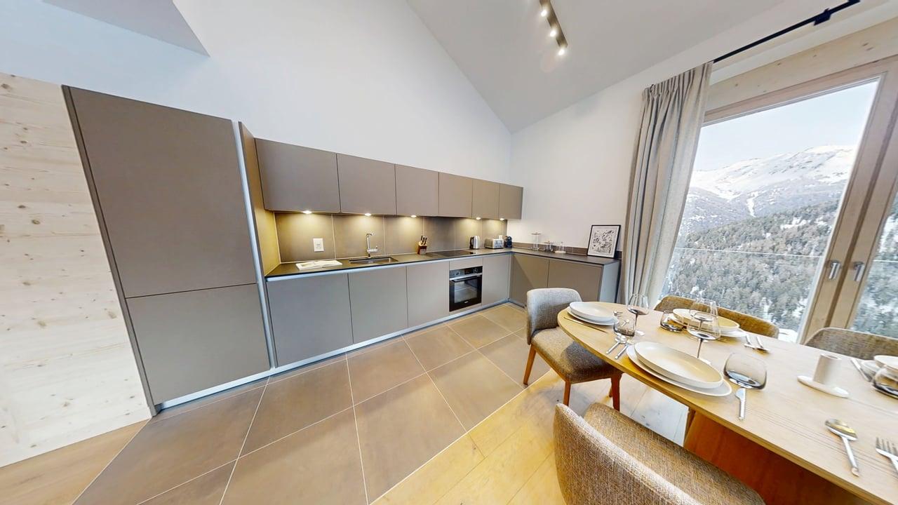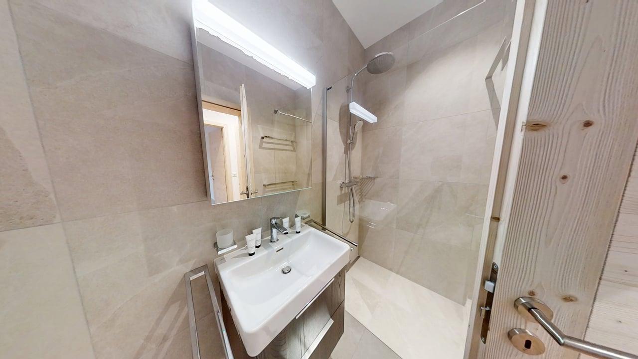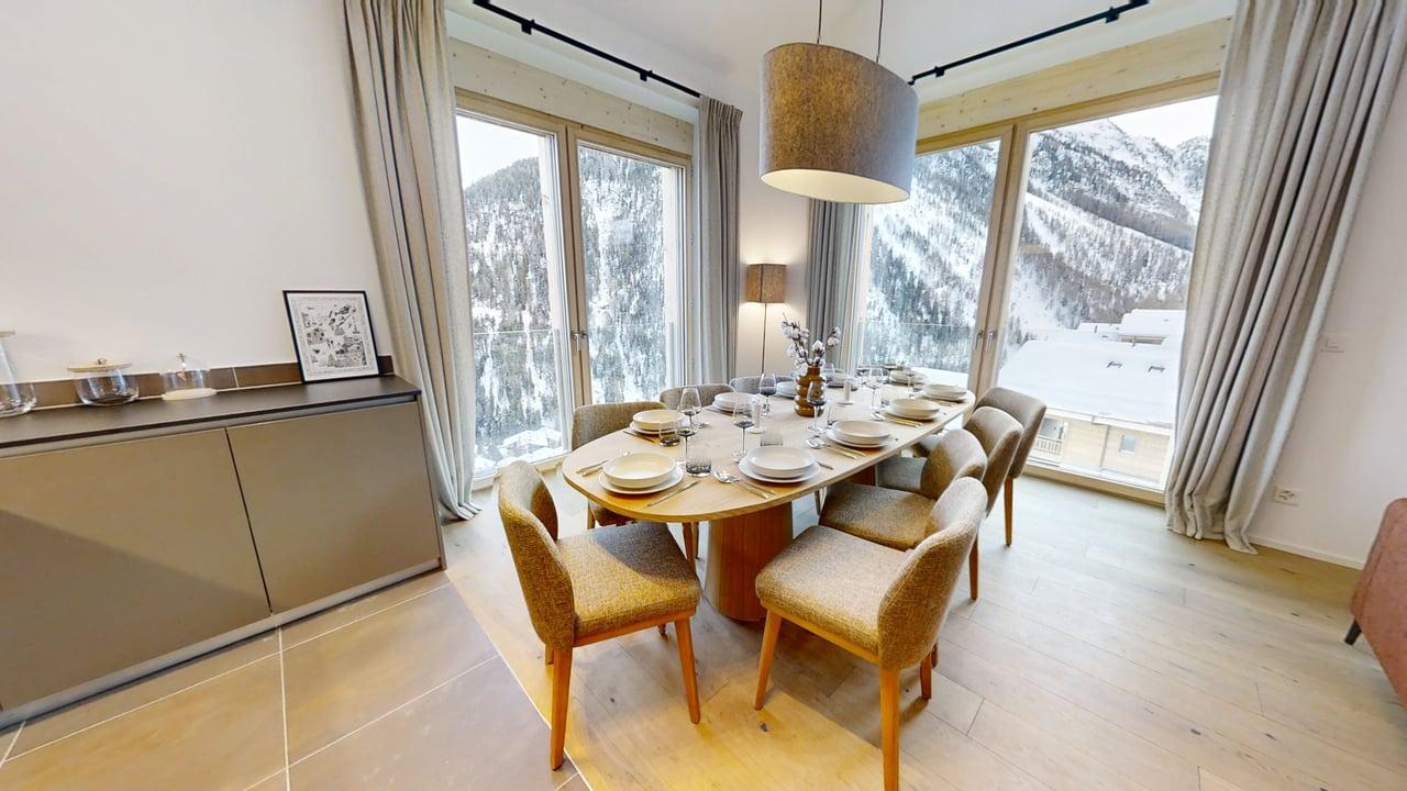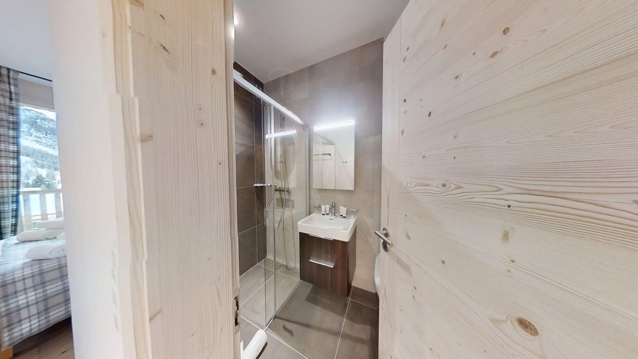 Cet appartement dispose de quatre chambres avec un lit double (180*210, 160*200), d'un passage faisant office de cabine avec un lit superposé ainsi que de trois salles de bains. La pièce de vie bénéficie d'un coin salon avec une télévision et d'une cuisine ouverte toute équipée. Trois balcons viennent compléter l'espace. Cet appartement dispose d'appareils électroménagers tels qu'un lave vaisselle, une machine à café Nespresso, le nécessaire de cuisine, etc.